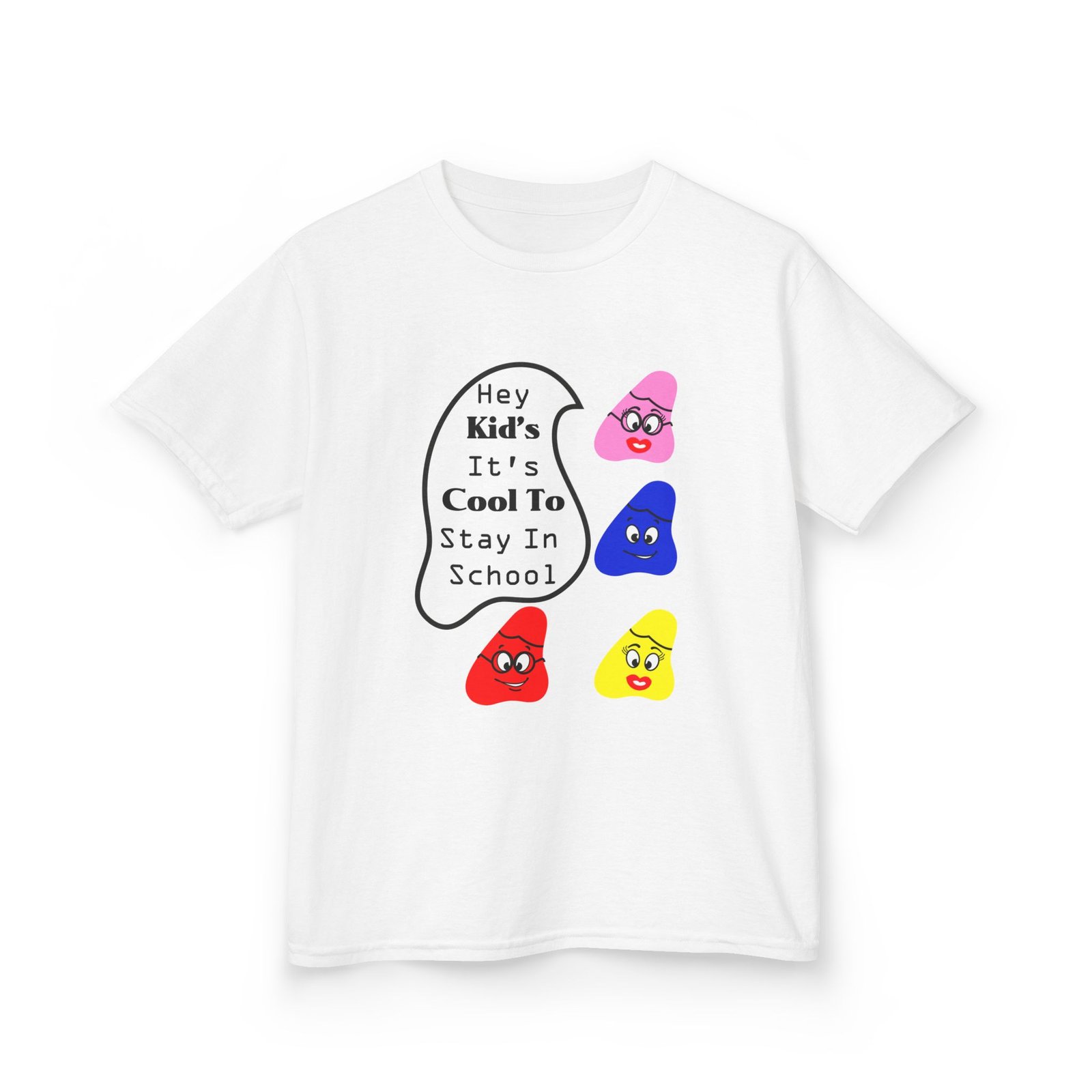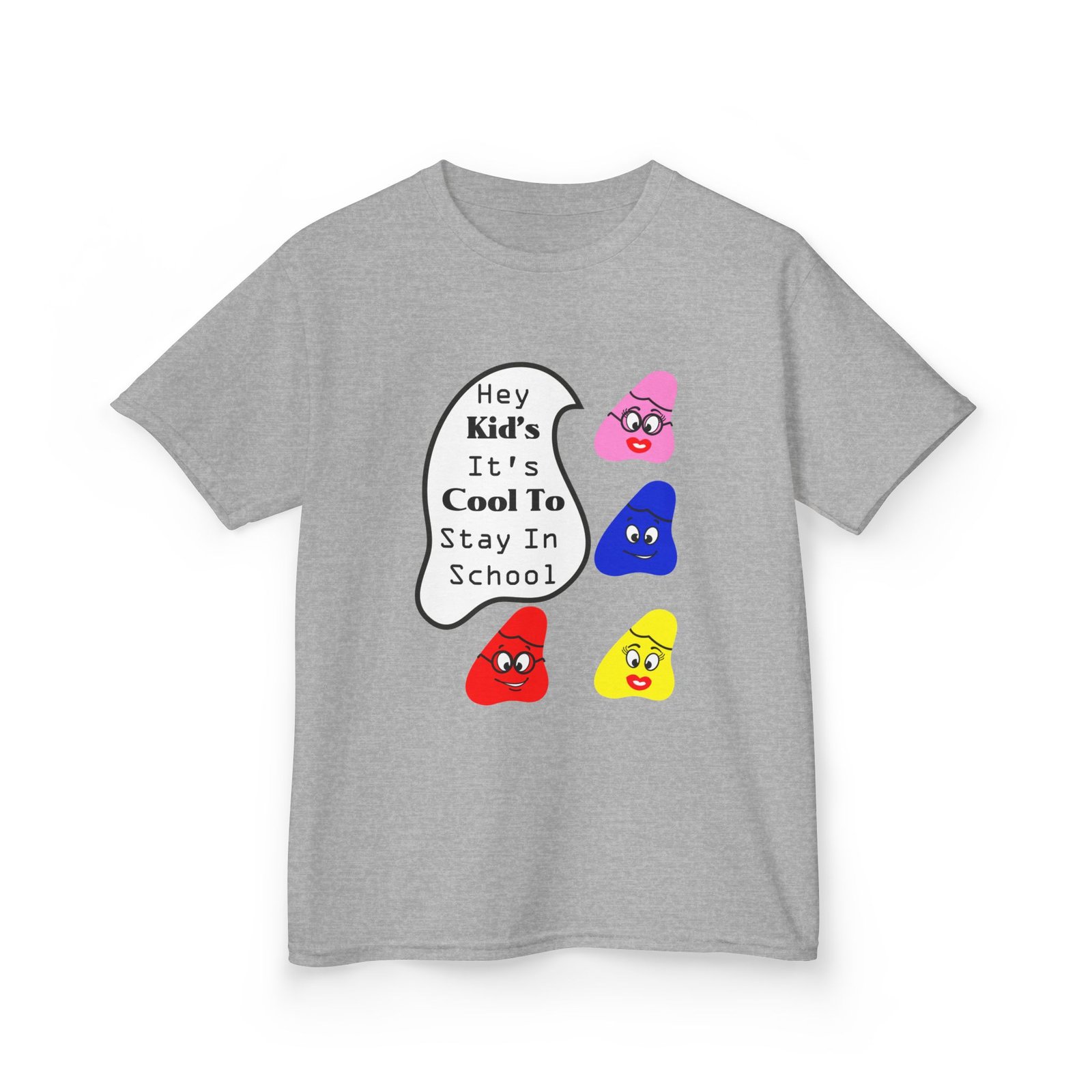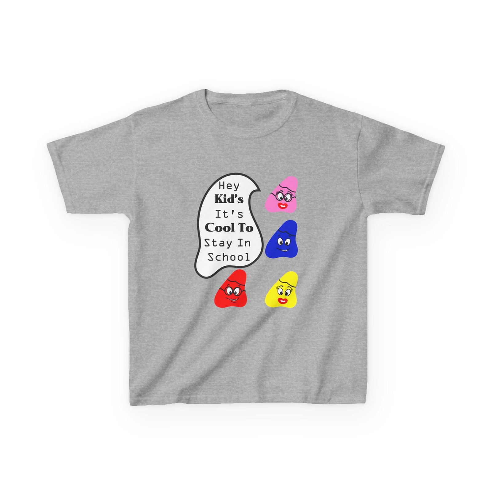 The kids heavy cotton tee is perfect for everyday use. The fabric is 100% cotton for solid colors. Polyester is included for heather-color variants. These fabrics are prime materials for printing. The shoulders have twill tape for improved durability. The collar is curl resistant due to ribbed knitting. There are no seams along the sides.