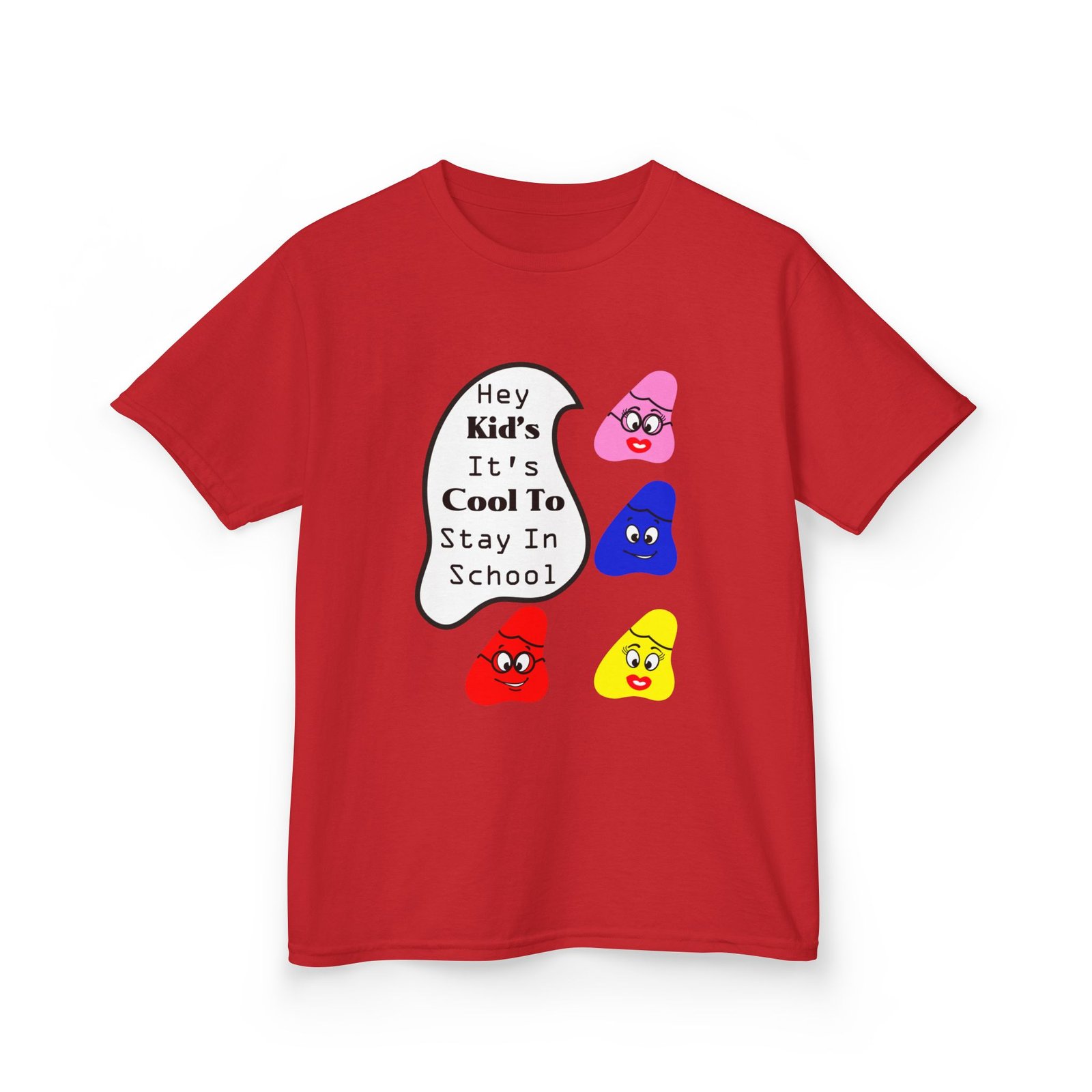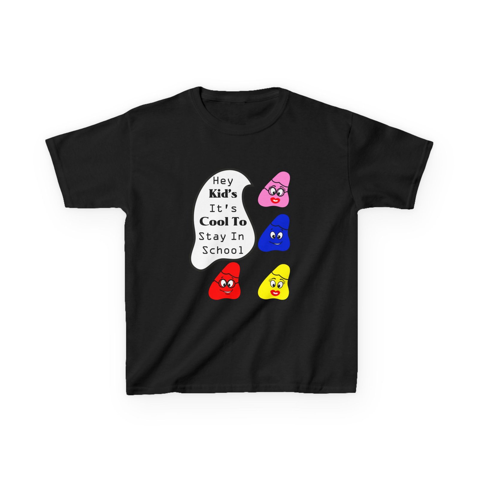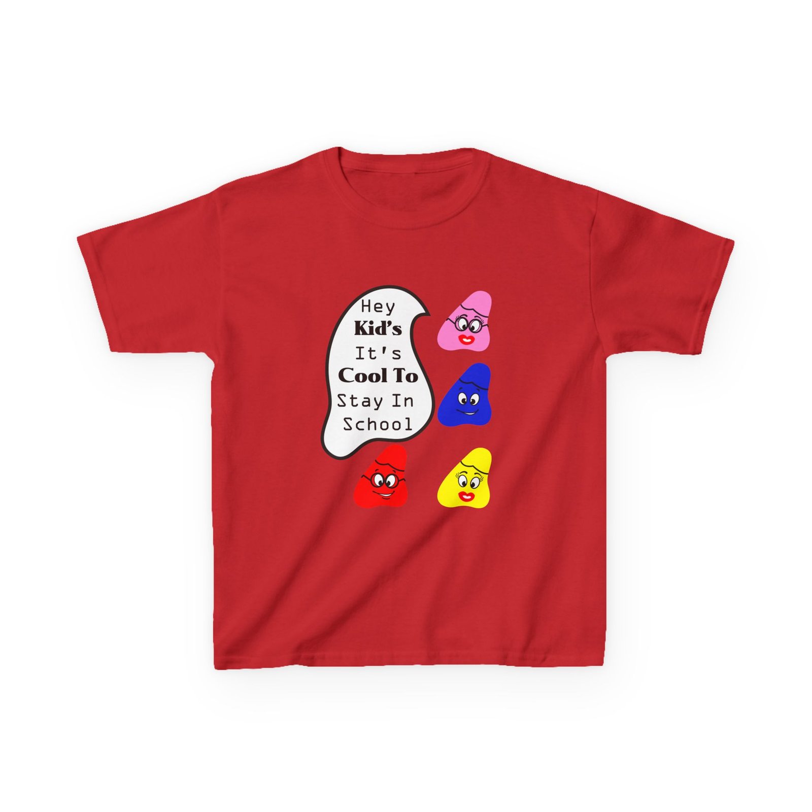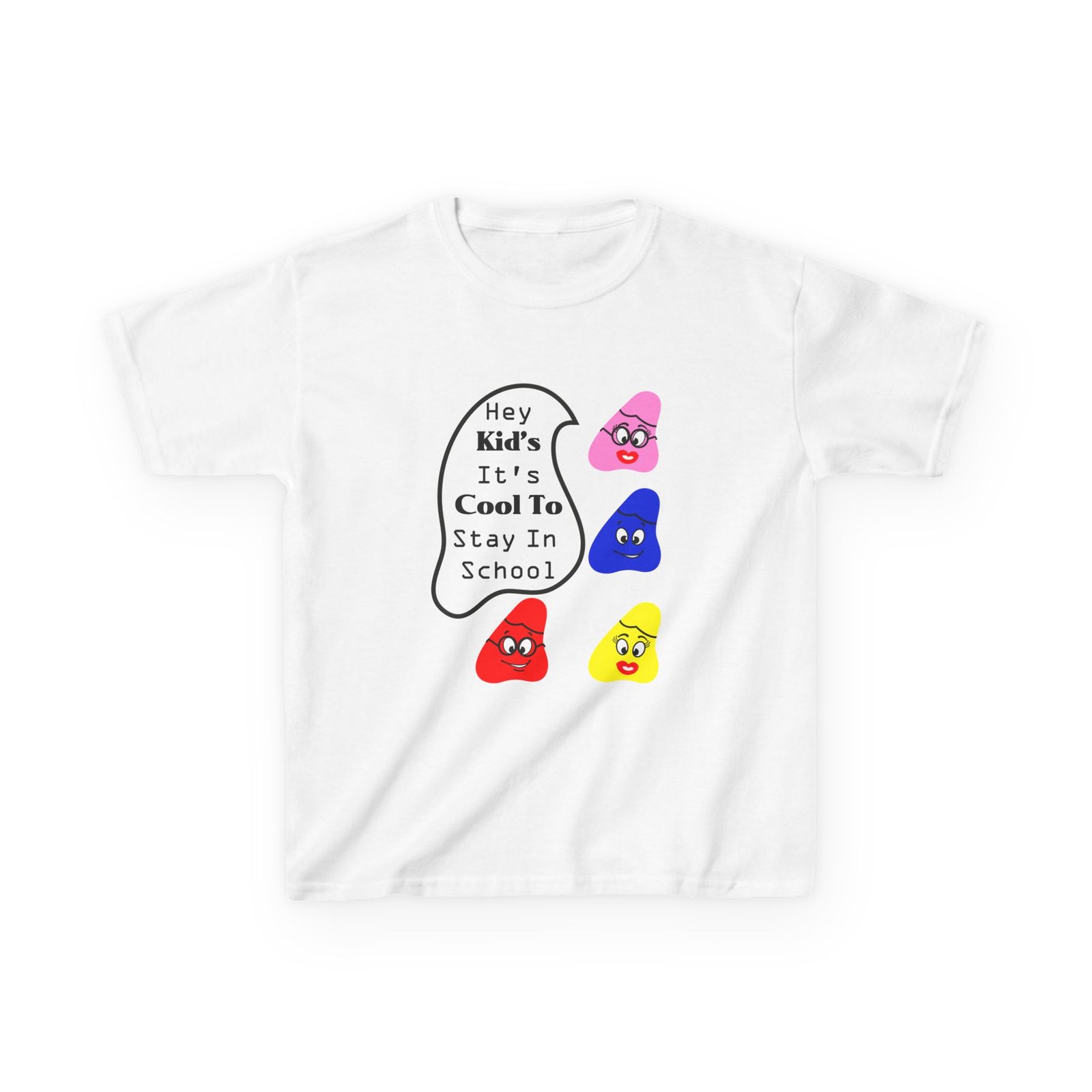 The kids heavy cotton tee is perfect for everyday use. The fabric is 100% cotton for solid colors. Polyester is included for heather-color variants. These fabrics are prime materials for printing. The shoulders have twill tape for improved durability. The collar is curl resistant due to ribbed knitting. There are no seams along the sides.