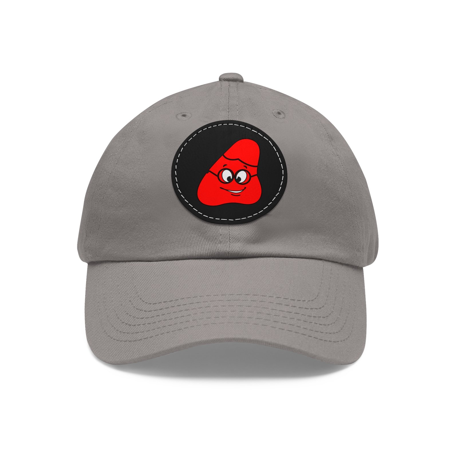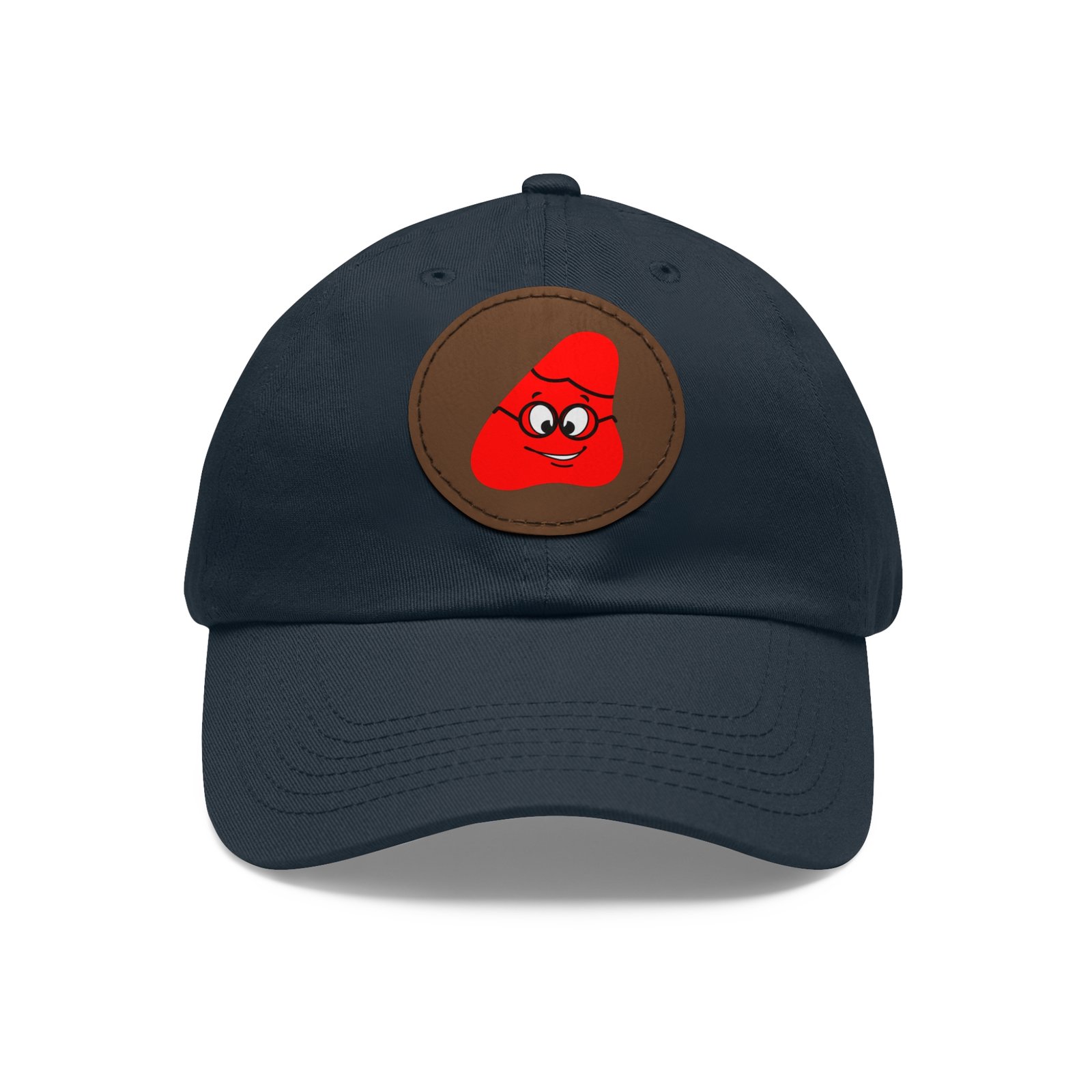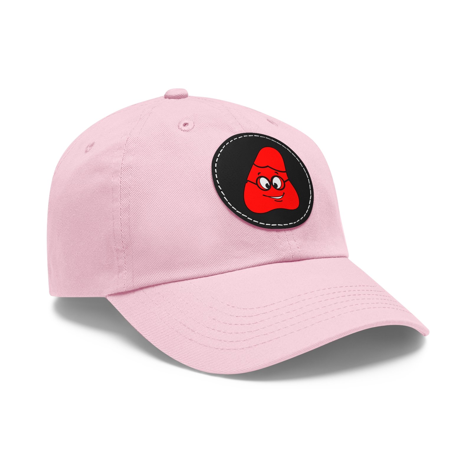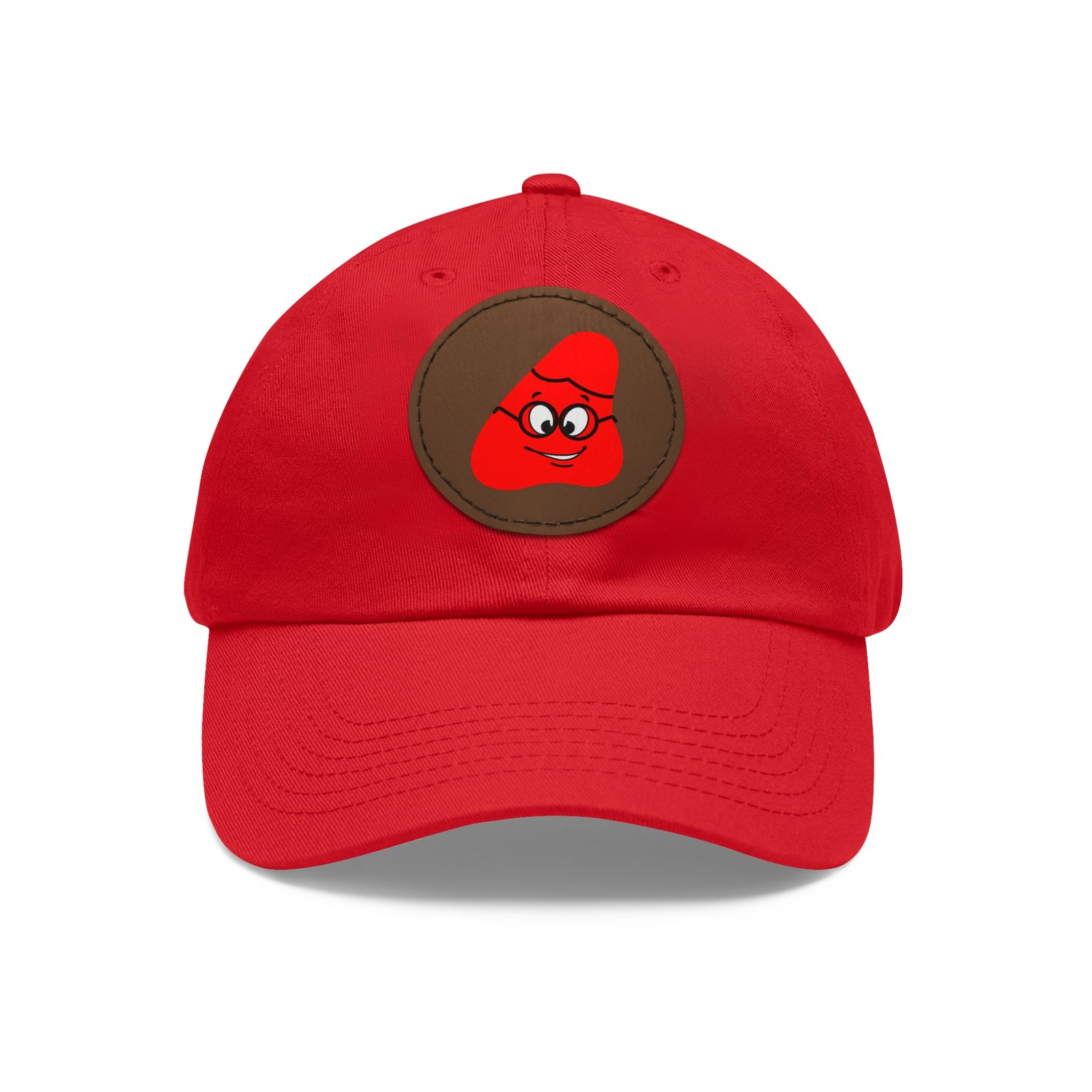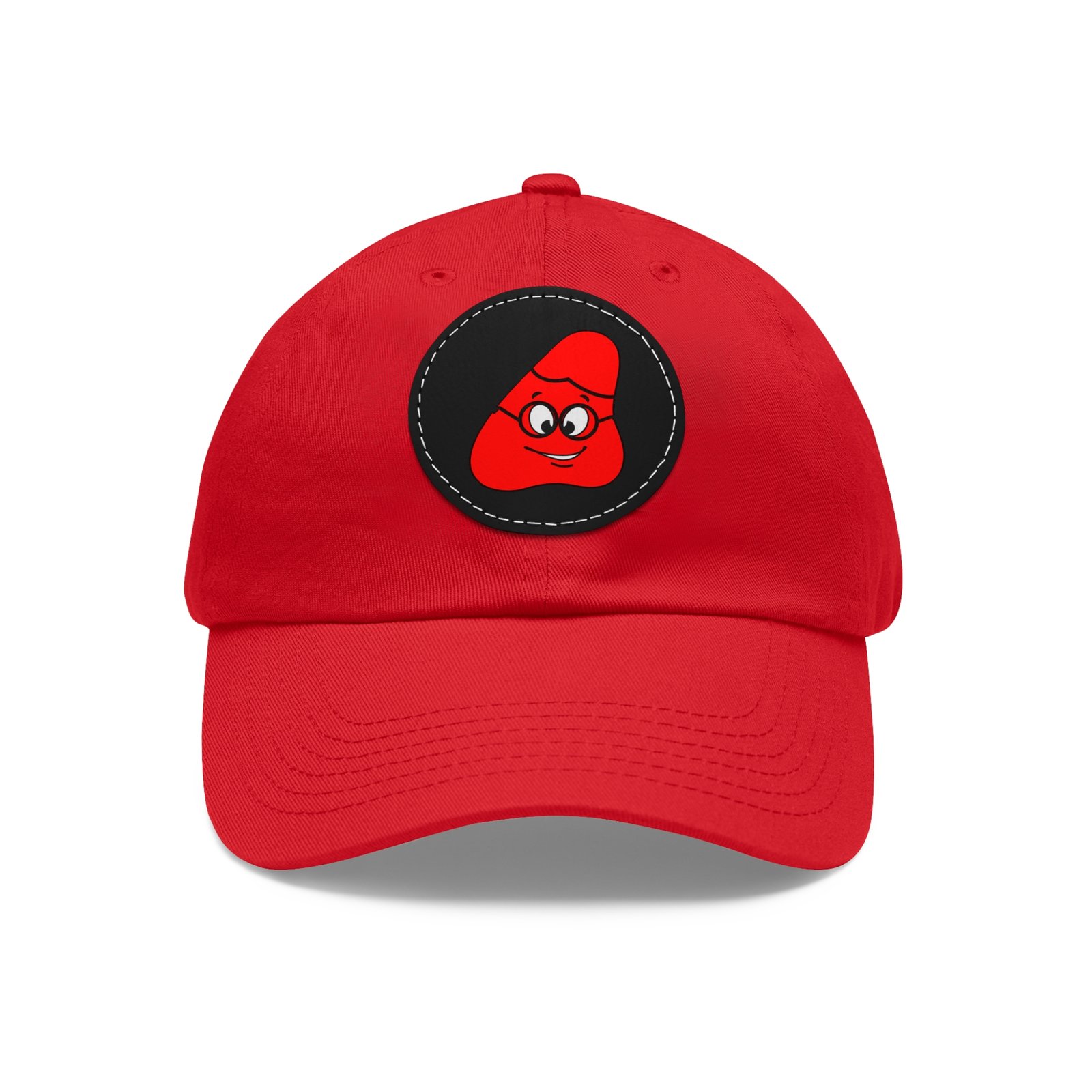 Red Been Dad Hat with Leather Patch (Round)