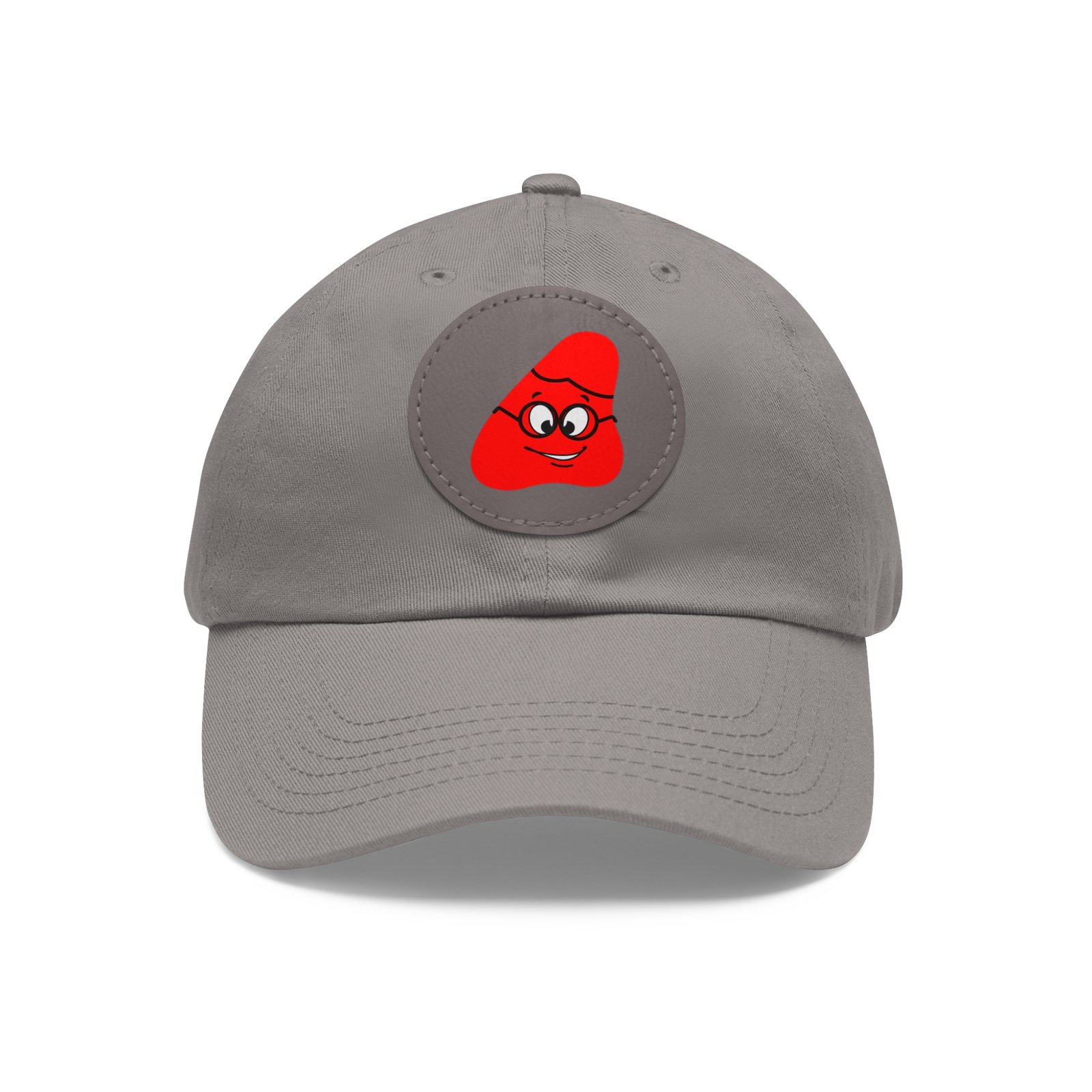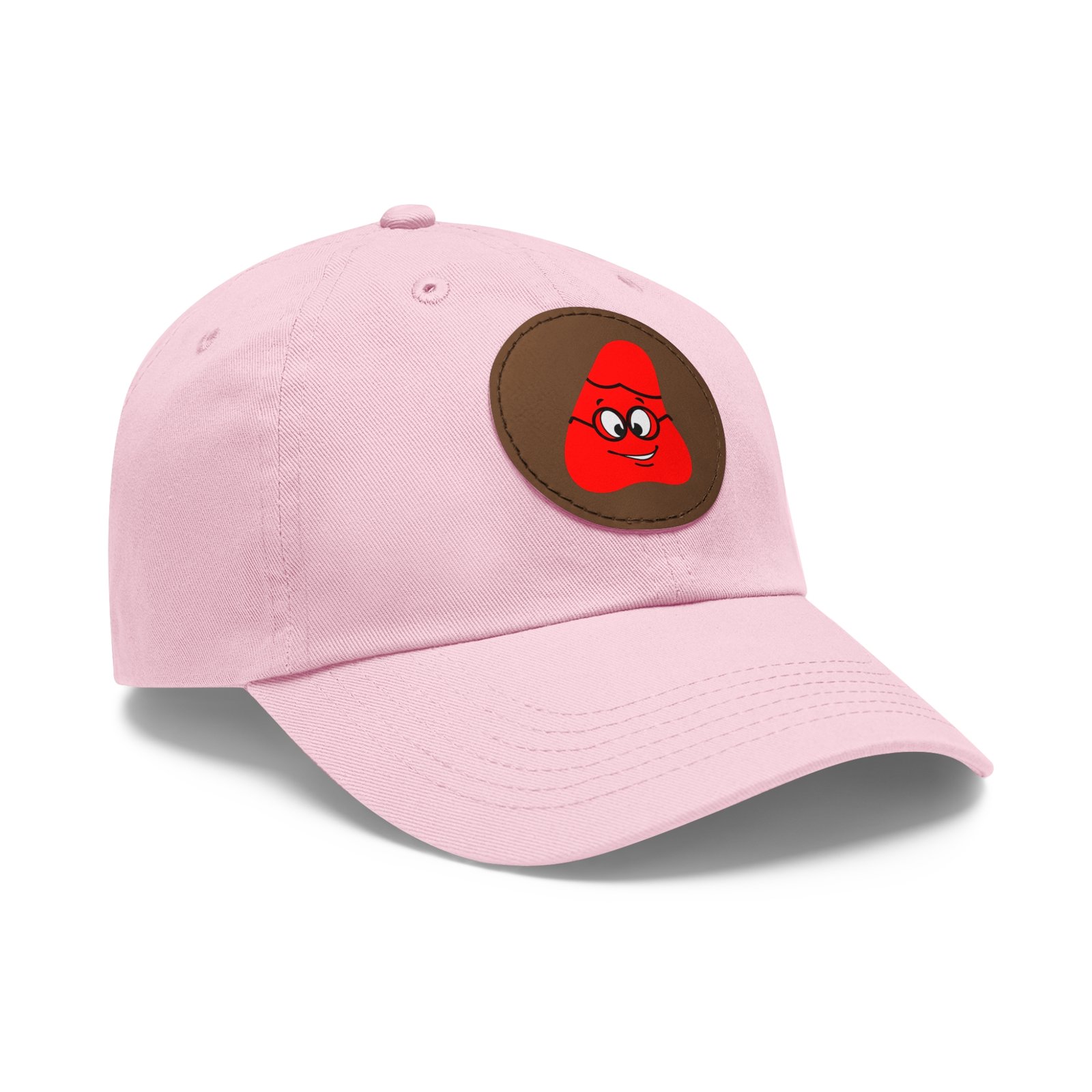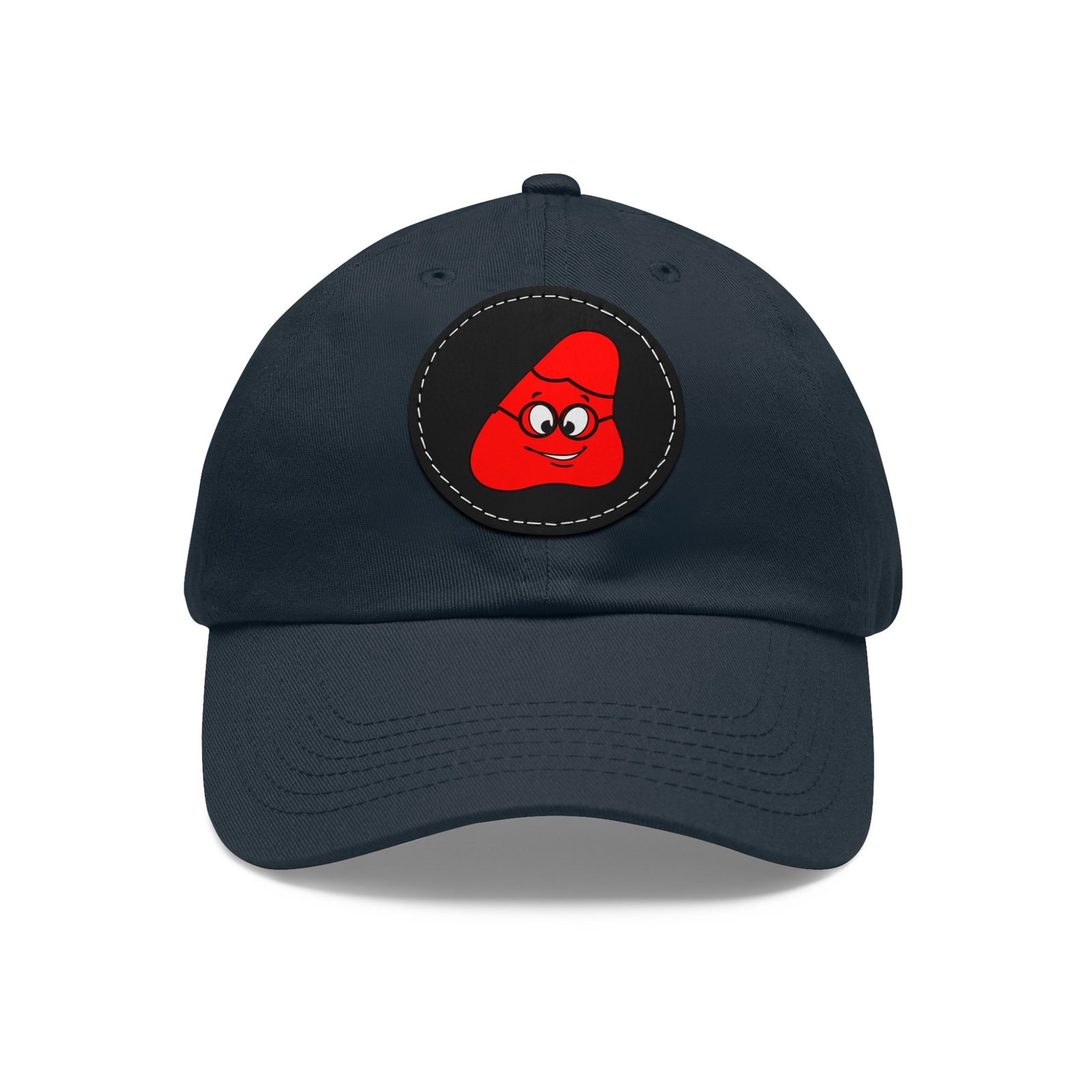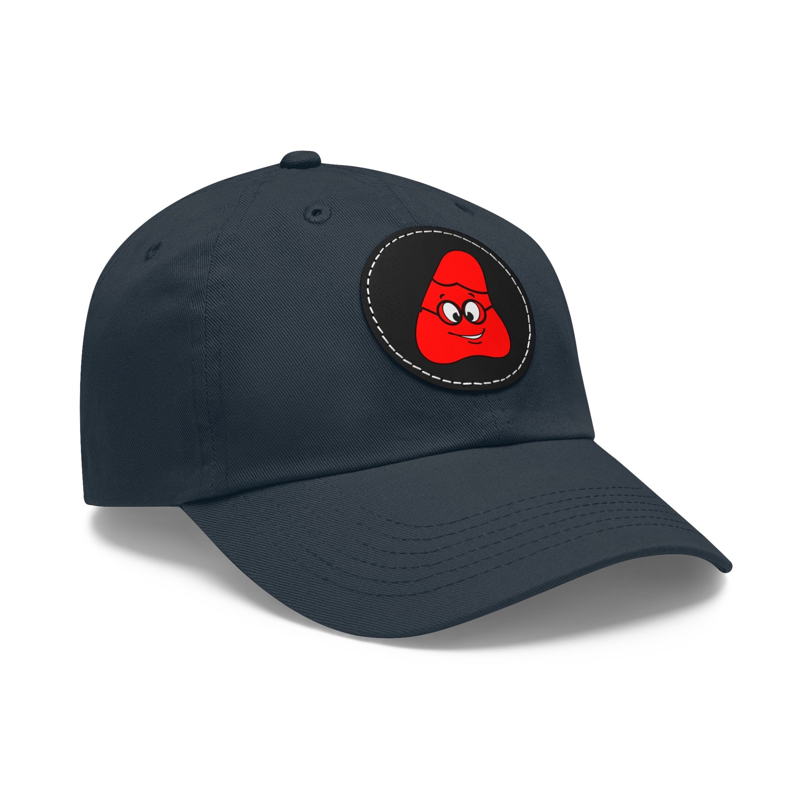 Red Been Dad Hat with Leather Patch (Round)