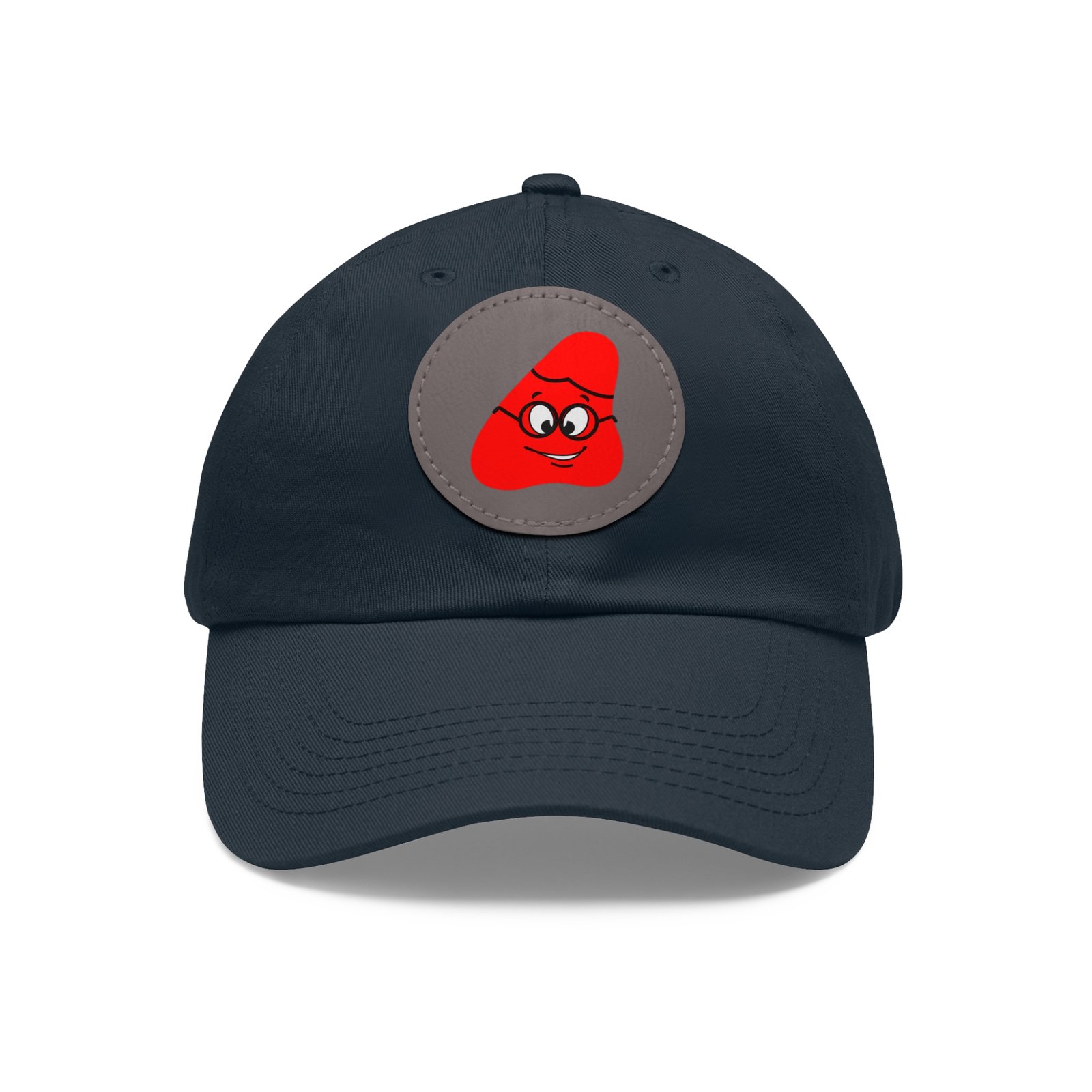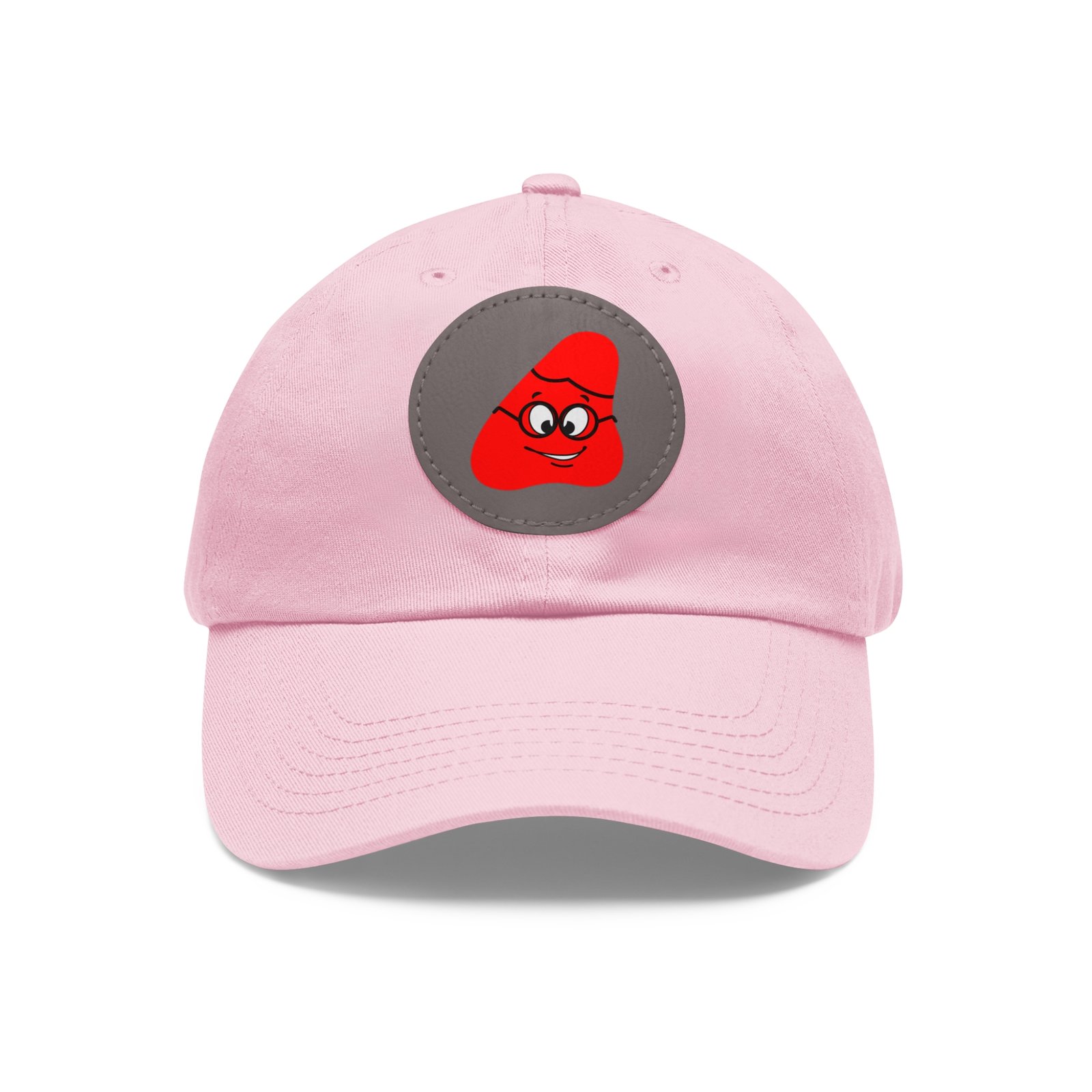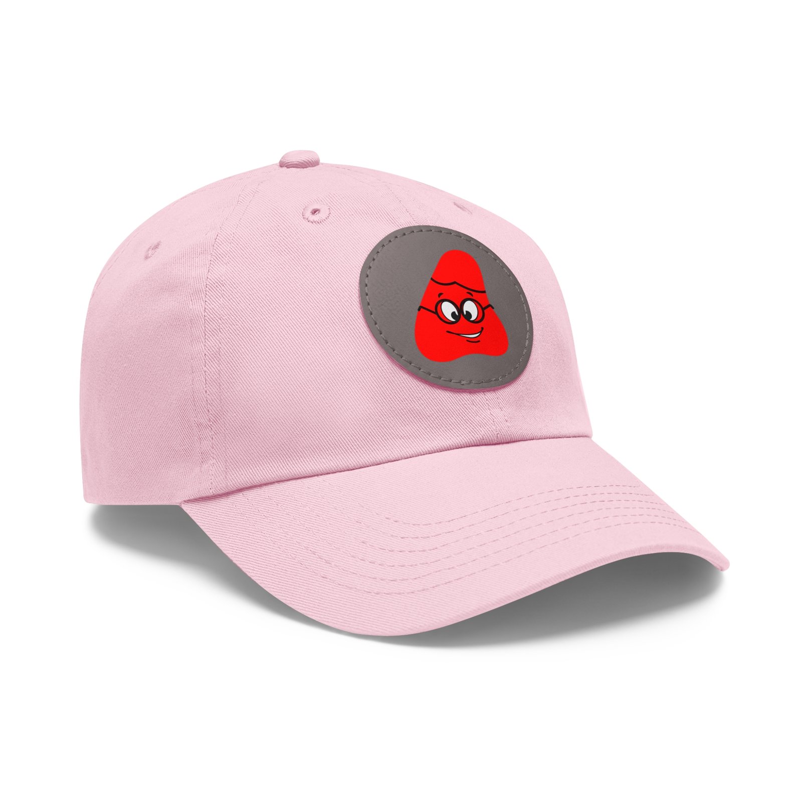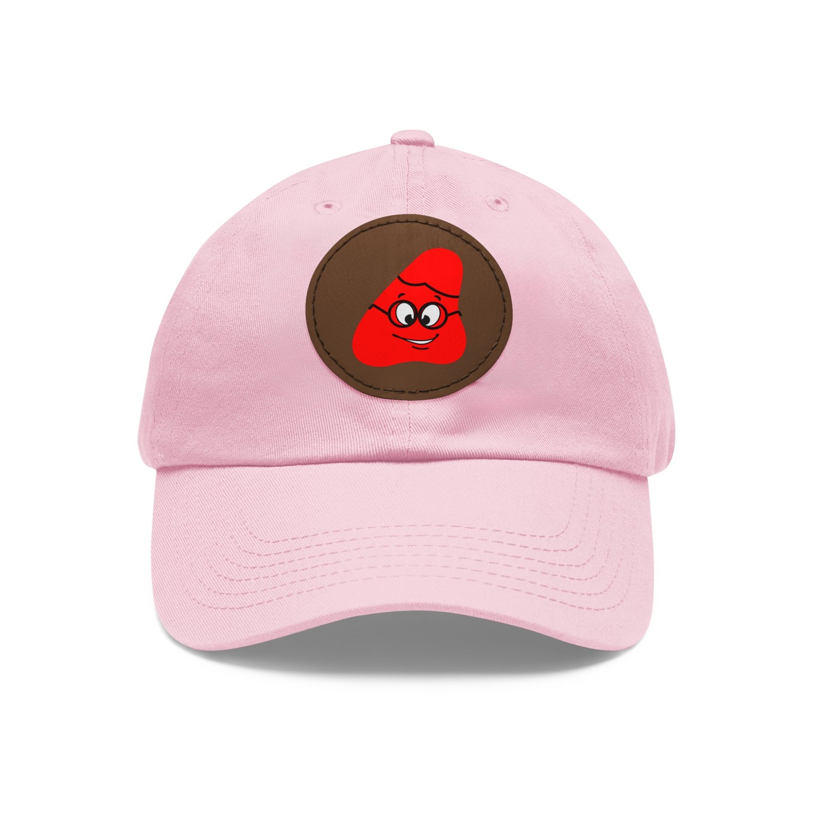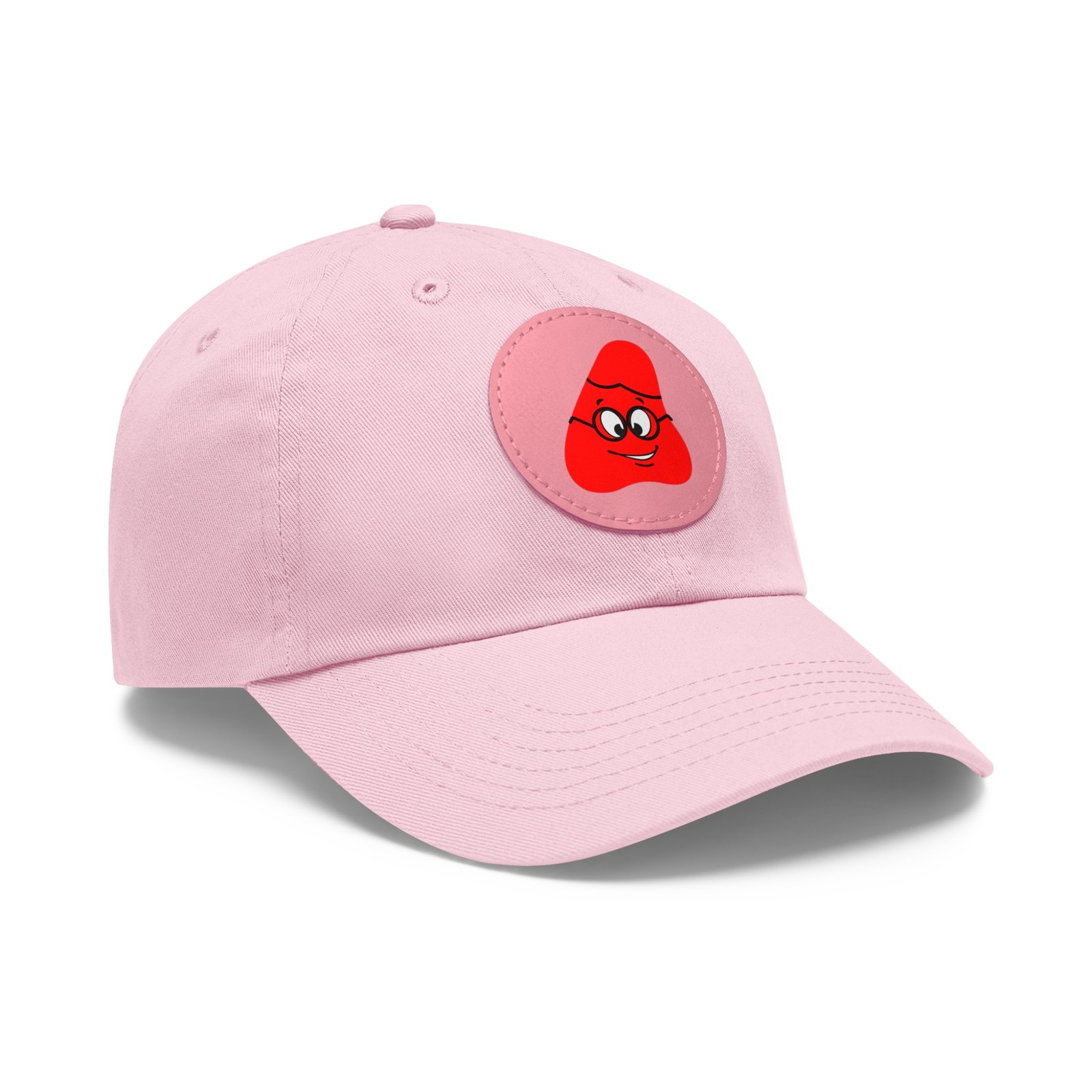 Red Been Dad Hat with Leather Patch (Round)