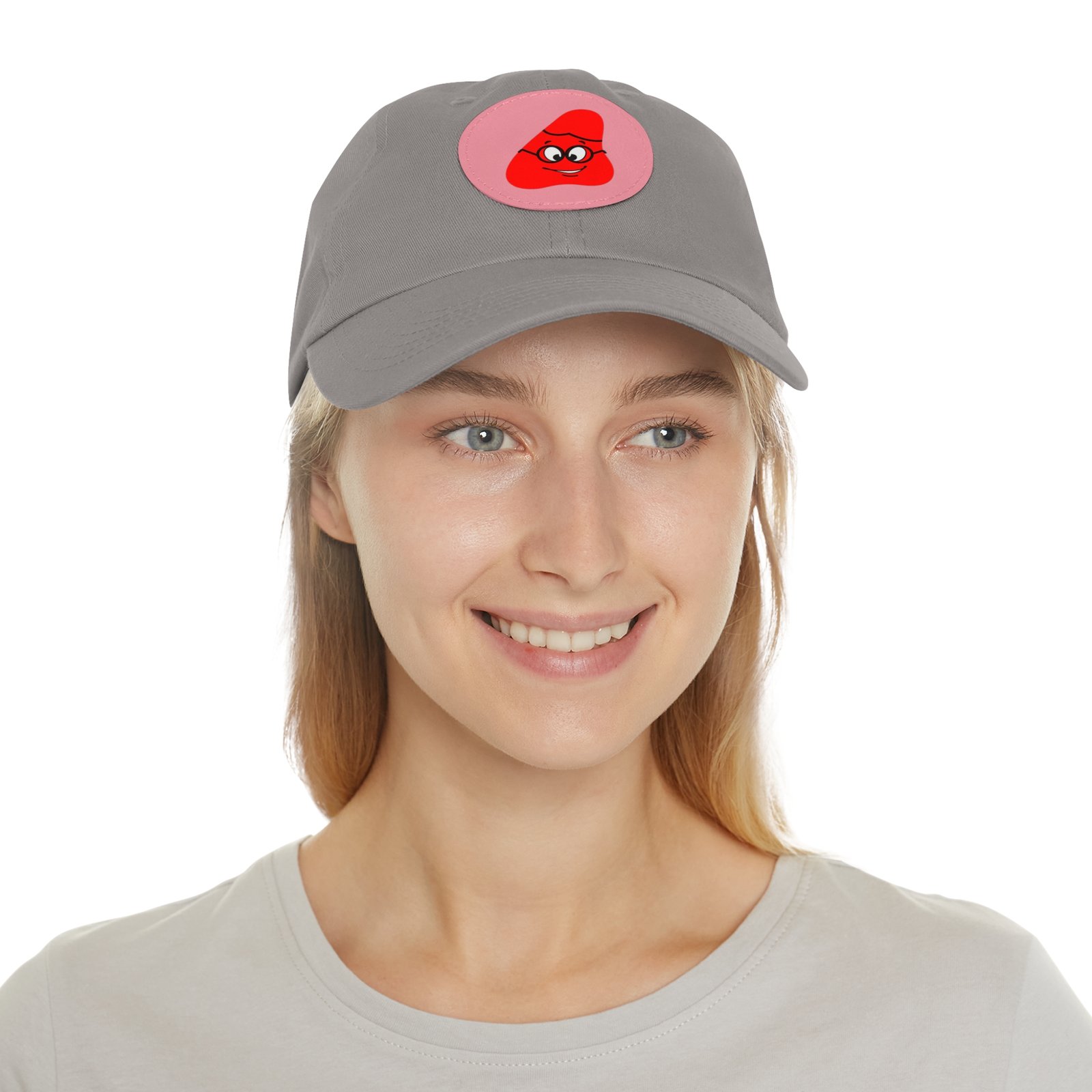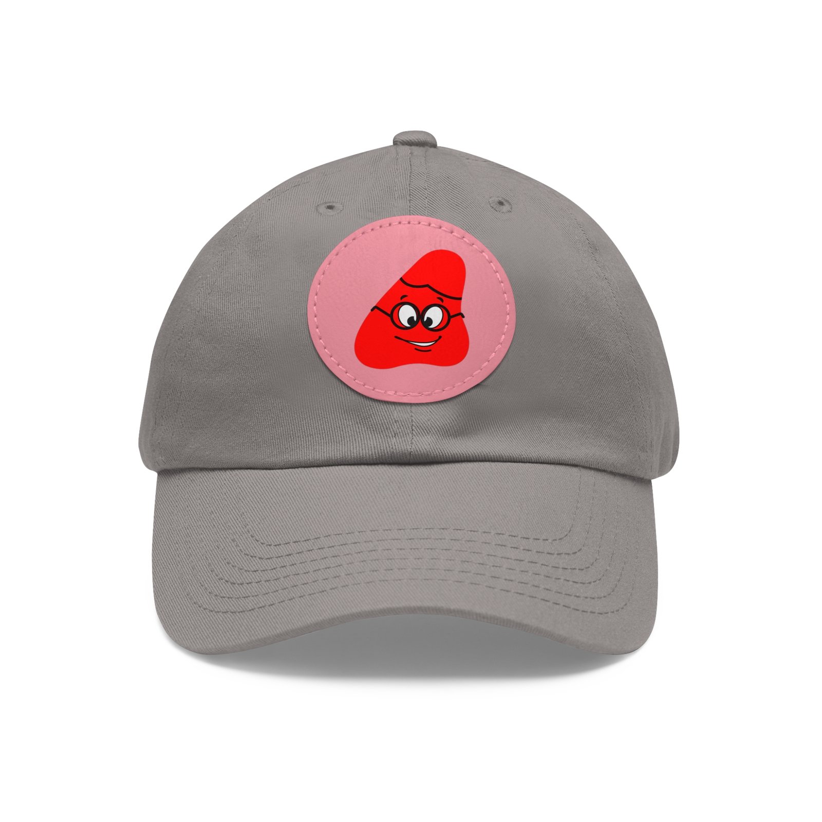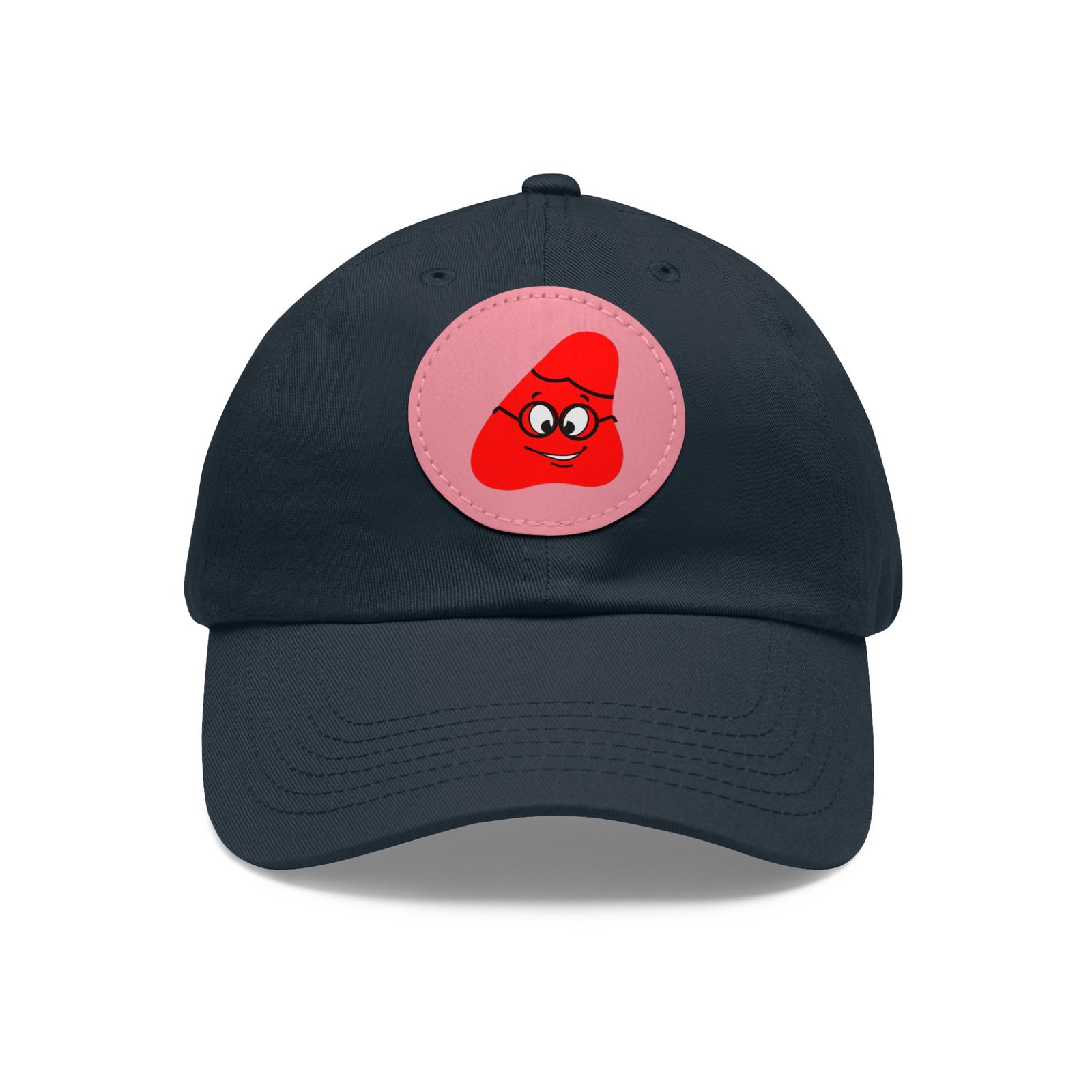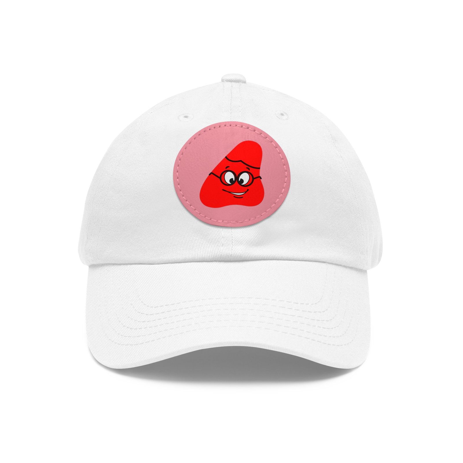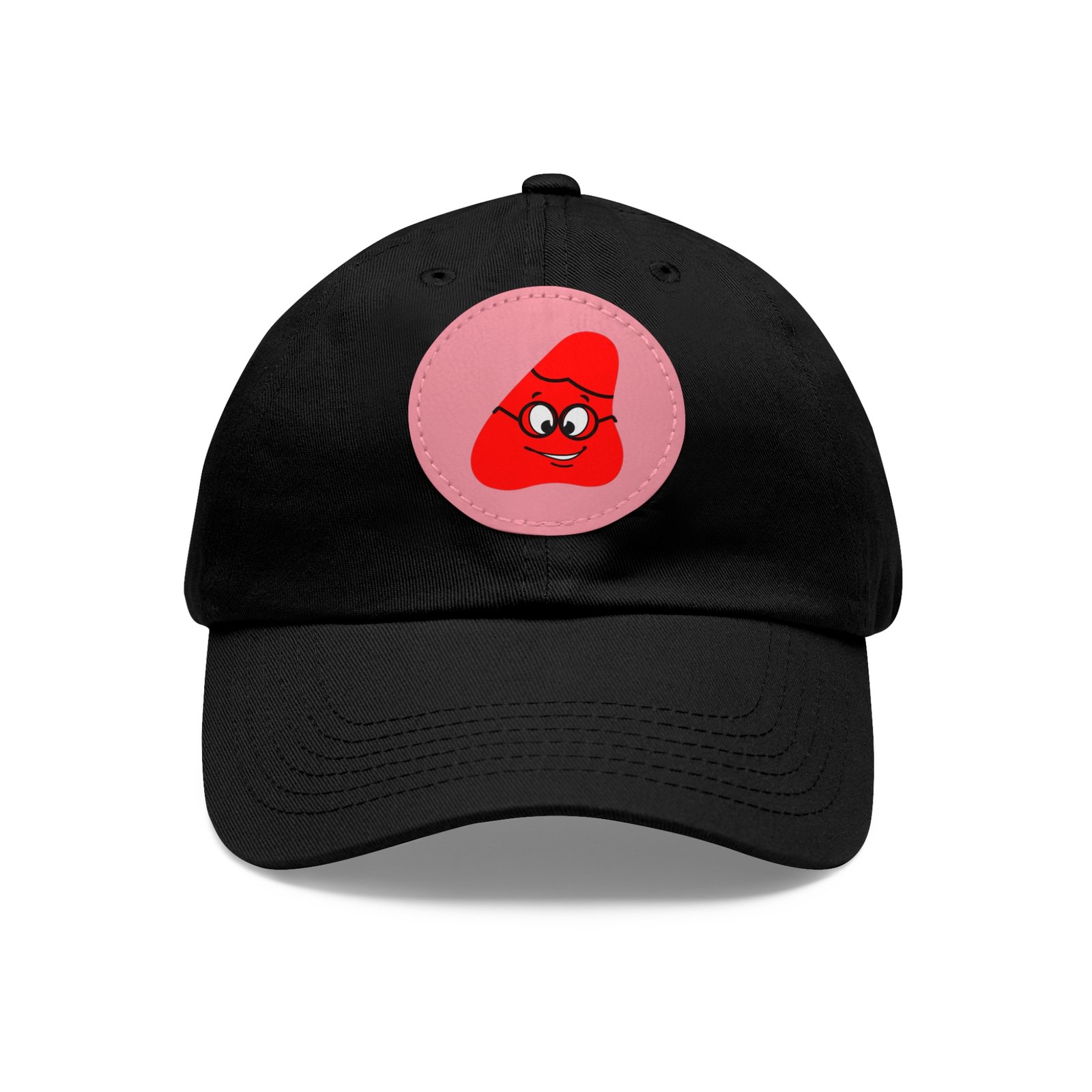 Red Been Dad Hat with Leather Patch (Round)